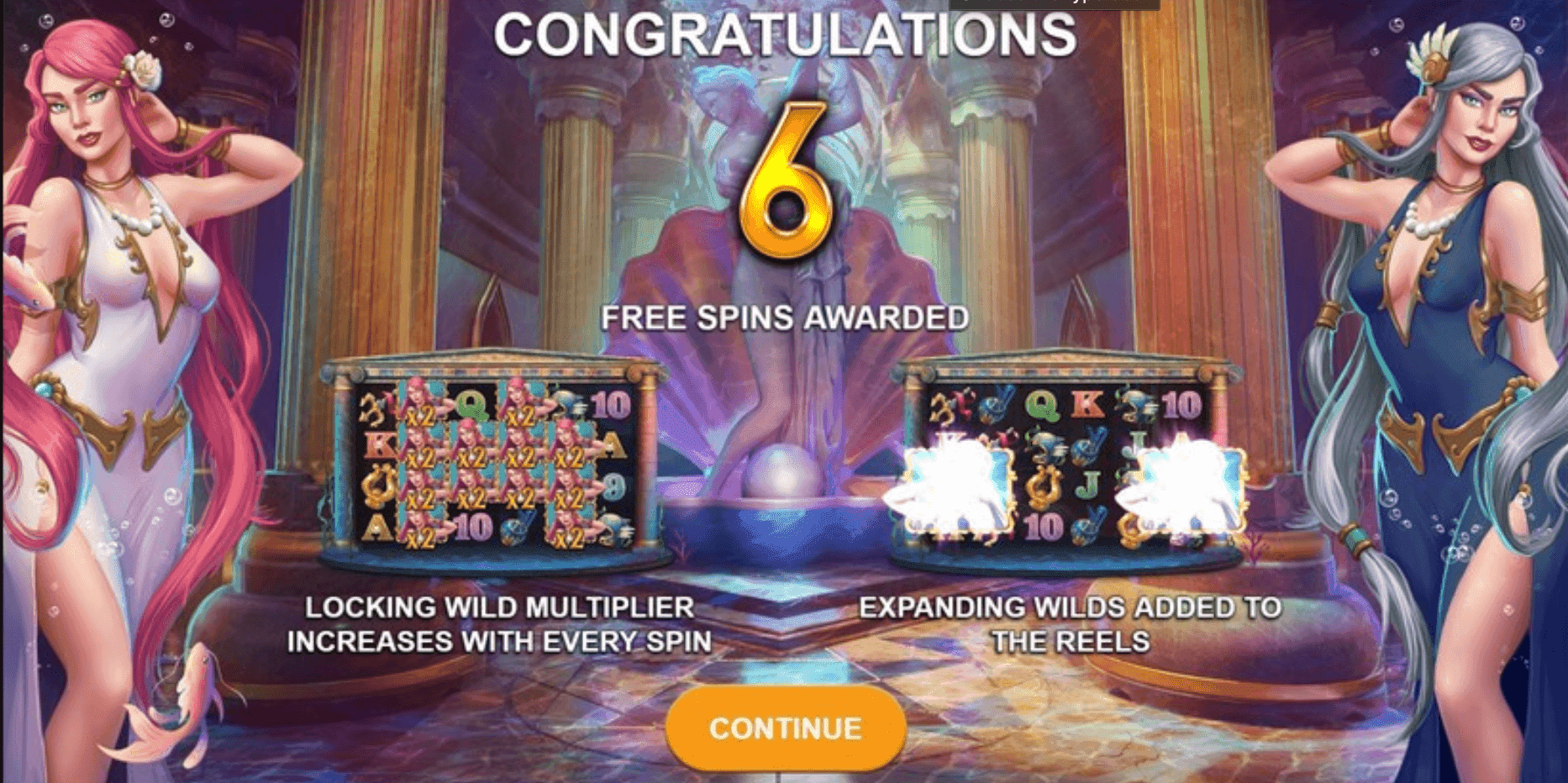 - Ocean Respins - Για να ενεργοποιήσετε αυτήν τη λειτουργία, πρέπει να συγκεντρώσετε μαργαριτάρια που συλλέγονται από τα σύμβολα στρείδι στο μετρητή διαδρομής μαργαριταριών μέχρι να ολοκληρωθεί. Η επέκταση των πολλαπλασιαστικών χαρακτήρων μπαλαντέρ προστίθεται τυχαία σε διάφορες στήλες που καλύπτουν όλες τις θέσεις για να βοηθήσουν στη δημιουργία μαζικών πληρωμών. Το ασημένιο νόμισμα θα απονείμει 1 respin κατά τη διάρκεια των Ocean Respins ενώ το Gold Coin 2 respins.