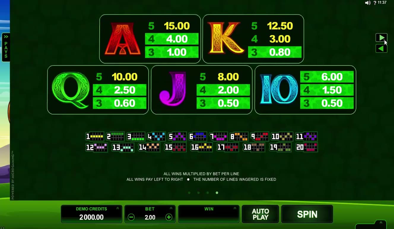 Υπάρχουν μερικές εντυπωσιακές πληρωμές σε αυτό το παιχνίδι. Το καλύτερο είναι το ποσό που μπορείτε να κερδίσετε μέσω του παιχνιδιού μπόνους Trail O Fortune, έως και 1.000x συνολικό στοίχημα, έως και 100.000 $. Οι τακτικοί συνδυασμοί πληρώνουν έως 5.000 $ και μπορούν να αυξηθούν σε 25.000 $ κατά τη διάρκεια δωρεάν περιστροφών. Ο μέσος όρος RTP 96.33% που έχει ο Lucky Leprechaun πρέπει να προσφέρει στους παίκτες ένα καλό κίνητρο για να δοκιμάσουν τον κουλοχέρη.